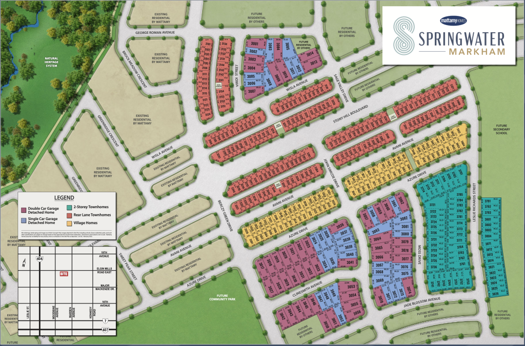 Situated just minutes from Markham’s rapidly growing Downtown, Springwater offers residents front-row access to a city on the rise. Downtown Markham is transforming into a world-class mixed-use hub with over 2.2 million sq. ft. of office space, 2 million sq. ft. of retail, and 10,000 new condos and townhomes planned for the coming decade. The upcoming $325 million, 20,000-seat GTA Centre will bring sports, concerts, and community events right to your doorstep. Surrounded by abundant green spaces, parks, and recreational spots such as Rouge Valley Trail, Angus Glen Community Centre, and Richmond Green Sports Centre, Springwater combines urban vibrancy with natural serenity. Developed by Mattamy Homes — an award-winning builder recognized as Homebuilder of the Year eight times — Springwater represents a rare opportunity to invest in one of Markham’s most promising and desirable communities.